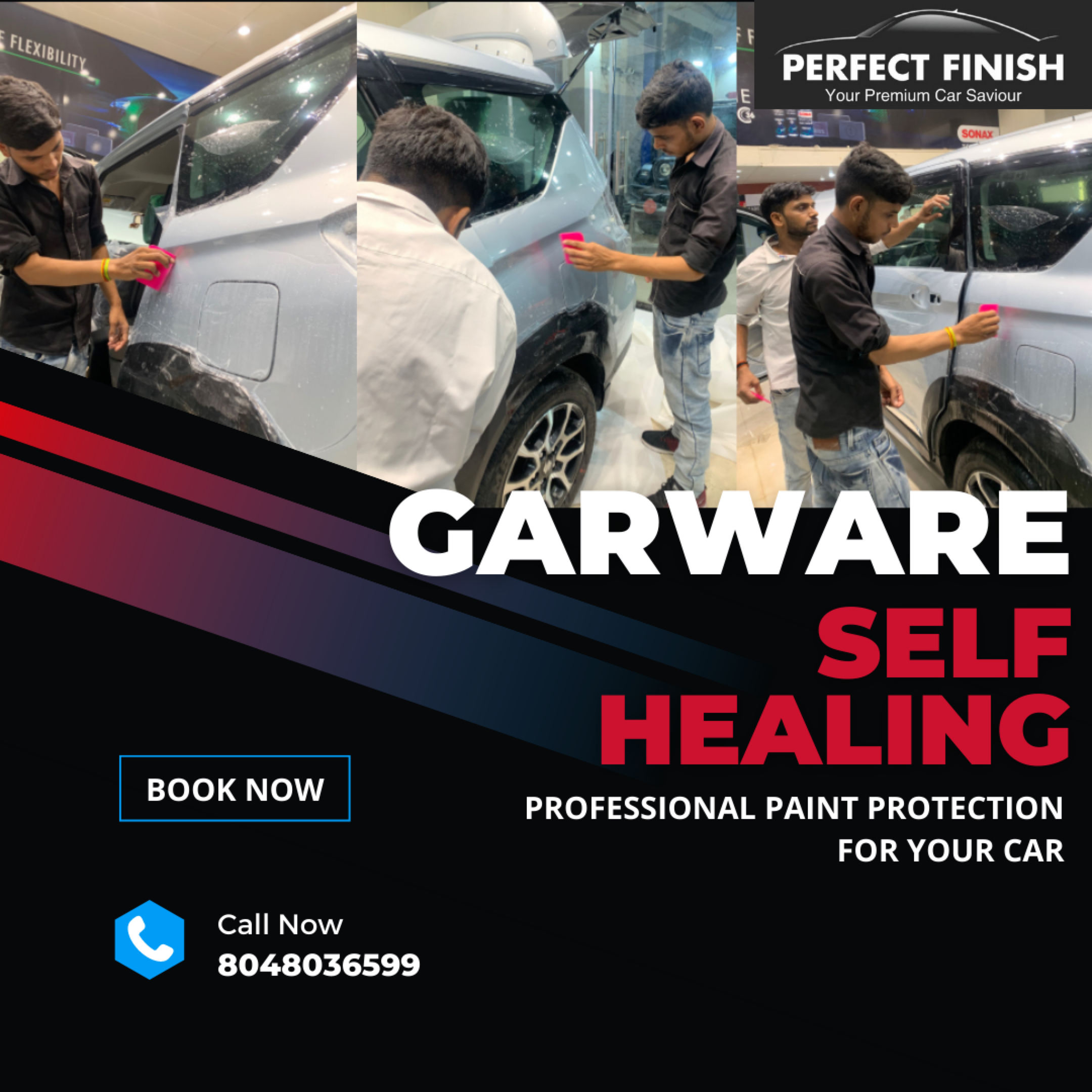 Best Self Healing PPF coating in FARIDABAD at PERFECT FINISH. Paint protection film (PPF, also called clear film or clear paint film) is a thermoplastic urethane often self healing film applied on painted surfaces of a new or used car in order to protect the paint from stone chips, bug splatters, and minor abrasions.