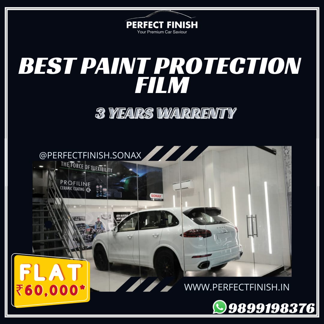 PPF at ₹60, 000* in FARIDABAD at Perfect Finish Paint protection film (PPF, also called clear film or clear paint film) is a thermoplastic urethane often self healing film applied on painted surfaces of a new or used car in order to protect the paint from stone chips, bug splatters, and minor abrasions. Get Yours @8860717211 For any queries contact us @perfectfinish.sonax