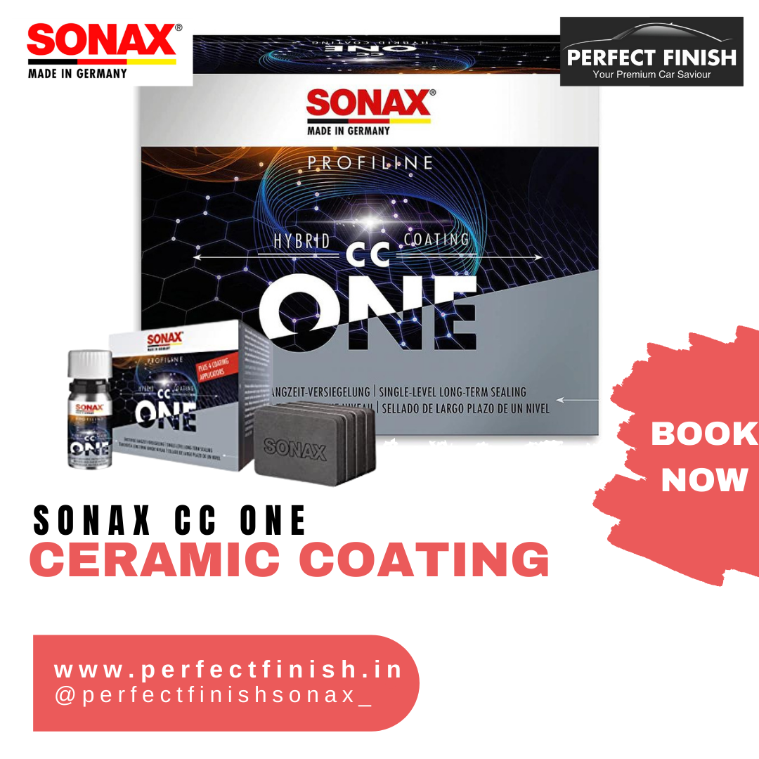 Sonax CC One Ceramic Coating now in Faridabad at Perfect Finish. As you all know that paint killers are everywhere such as rust, enzymes in bird droppings, UV radiation in summer, friction from luggage or fine sand that destroy your paint. Many of you might be struggling to keep the unique paint look of your beauty (Car), but that struggle is now over as we have Perfect Finish in your town. To defeat the army of harmful influences, your car paint need an active ally. And that powerful weapon is developed by Sonax – SONAX Hybrid Coating CC One. With application of one-step Hybrid Coating CC One, protection of your paintwork will be much easier in future.
